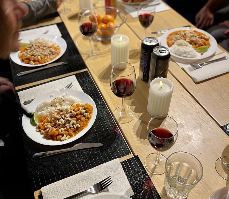 Kiekvieną sunkią arba nelabai žygio dieną baigsime bendra vakariene, kurią visi kartu ir paruošime. Pro langą mėgausimės jūros ir spragsinčio židinio vaizdais. Visi žygeiviai turės galimybę pasiūlyti savo idėjas vakarienei. Esame draugiški visų atžvilgiu, todėl stengiamės atsižvelgti į visų mitybos įpročius. Drąsiai informuokite apie savo mitybos įpročius. Vakarienės yra įskaičiuotos į kelionės kainą.