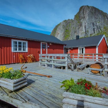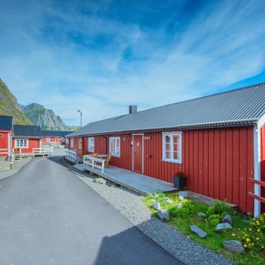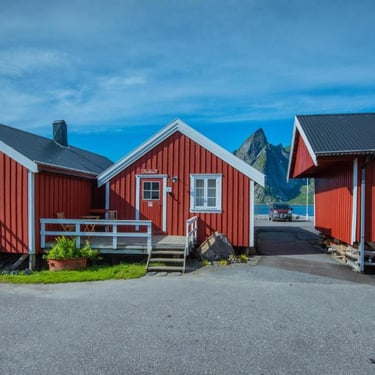 Šie tradiciniai nameliai yra įsikūręs atnaujintuose žvejų nameliuose Reine apylinkėse.